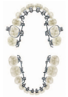 上の歯は裏側に下の歯は表側に矯正装置をつけます。